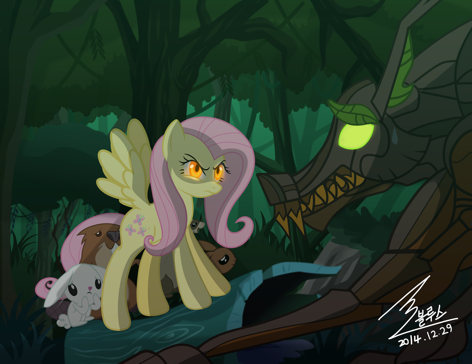 “Discord why did you tell every pony that I was being attacked? Because I actually wasn’t,” said Fluttershy. Discord replied “Well, when I looked out Angel’s bedroom window I saw a timber wolf running towards you, so I panicked.” Flutter shy looked at both of them and said, “Well I can see why you would think that I was in danger. But I wasn’t. You see I found this baby timber wolf when I was younger and I raised her to be strong, her name is Amanda. And she’s pregnant now! Aren’t you excited? Amanda came running for me so that when she has her babies they won’t be harmed.” Discord and Rainbow Dash understood and walked away, lesson learned.